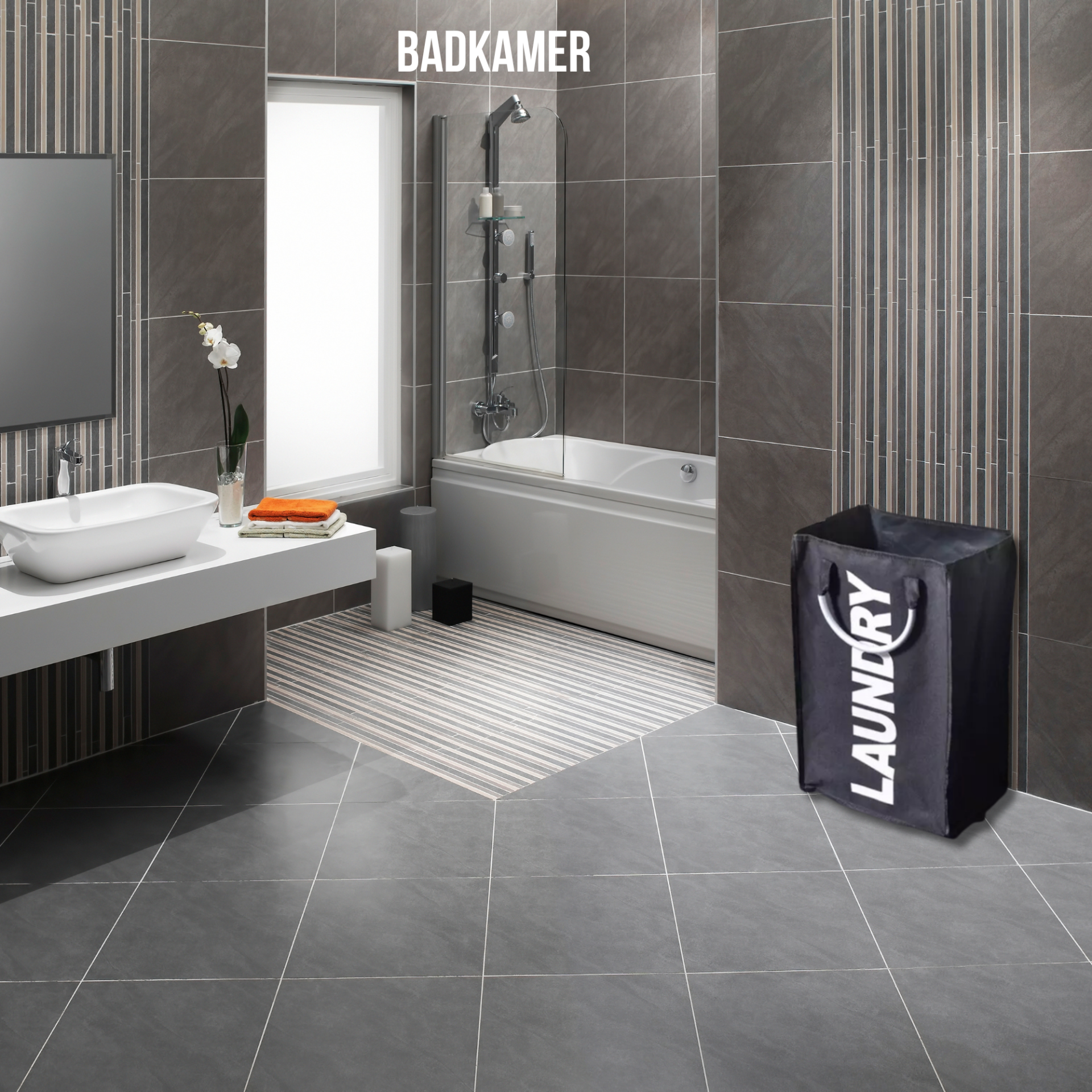 Het materiaal van de wasmand is polyester en de wasmand voelt zacht aan. De handgrepen zijn gemaakt van aluminium.