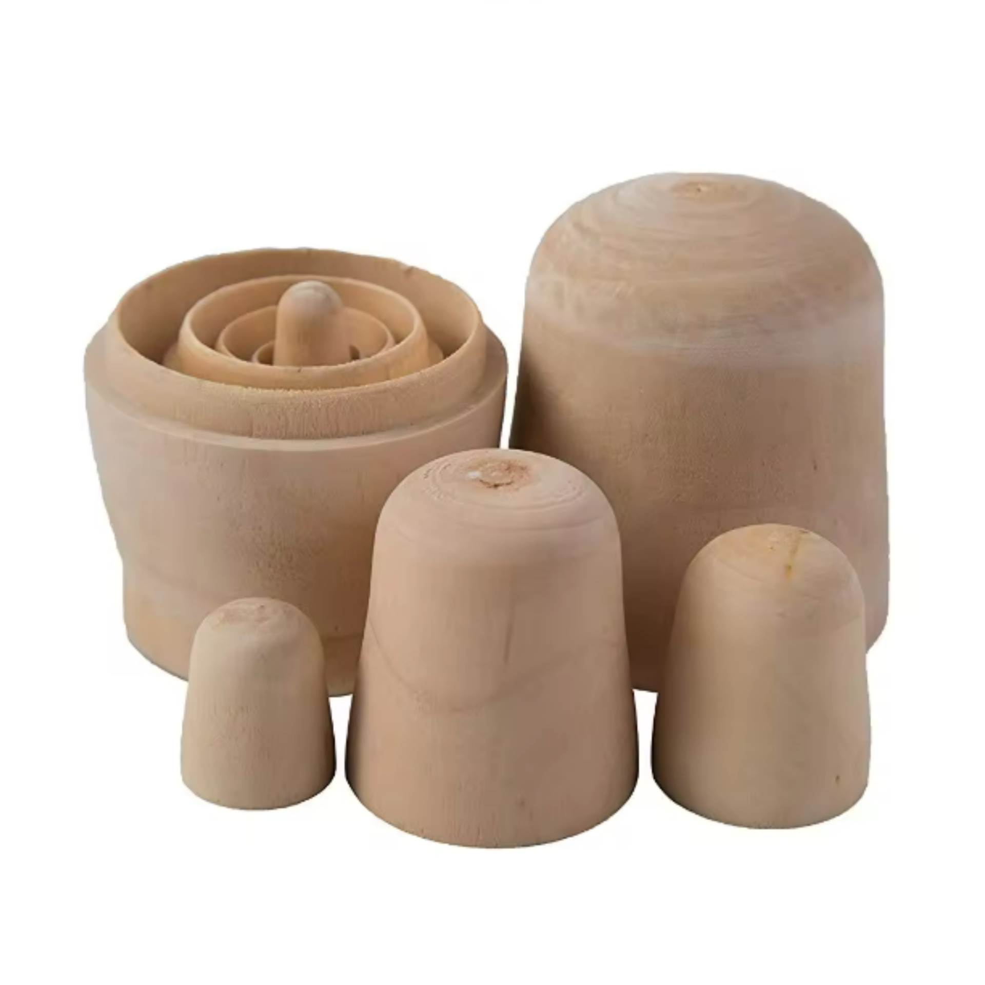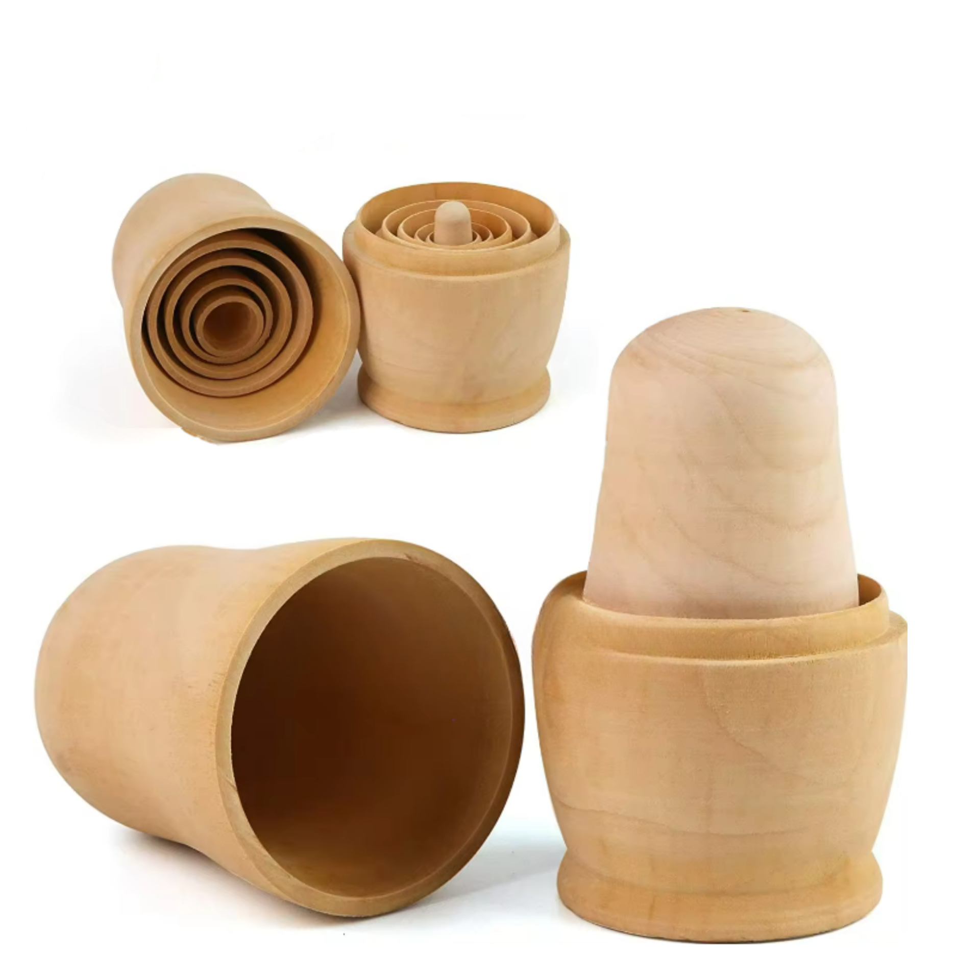 - 5 poppen in 1, van hout, handig om te beschilderen.