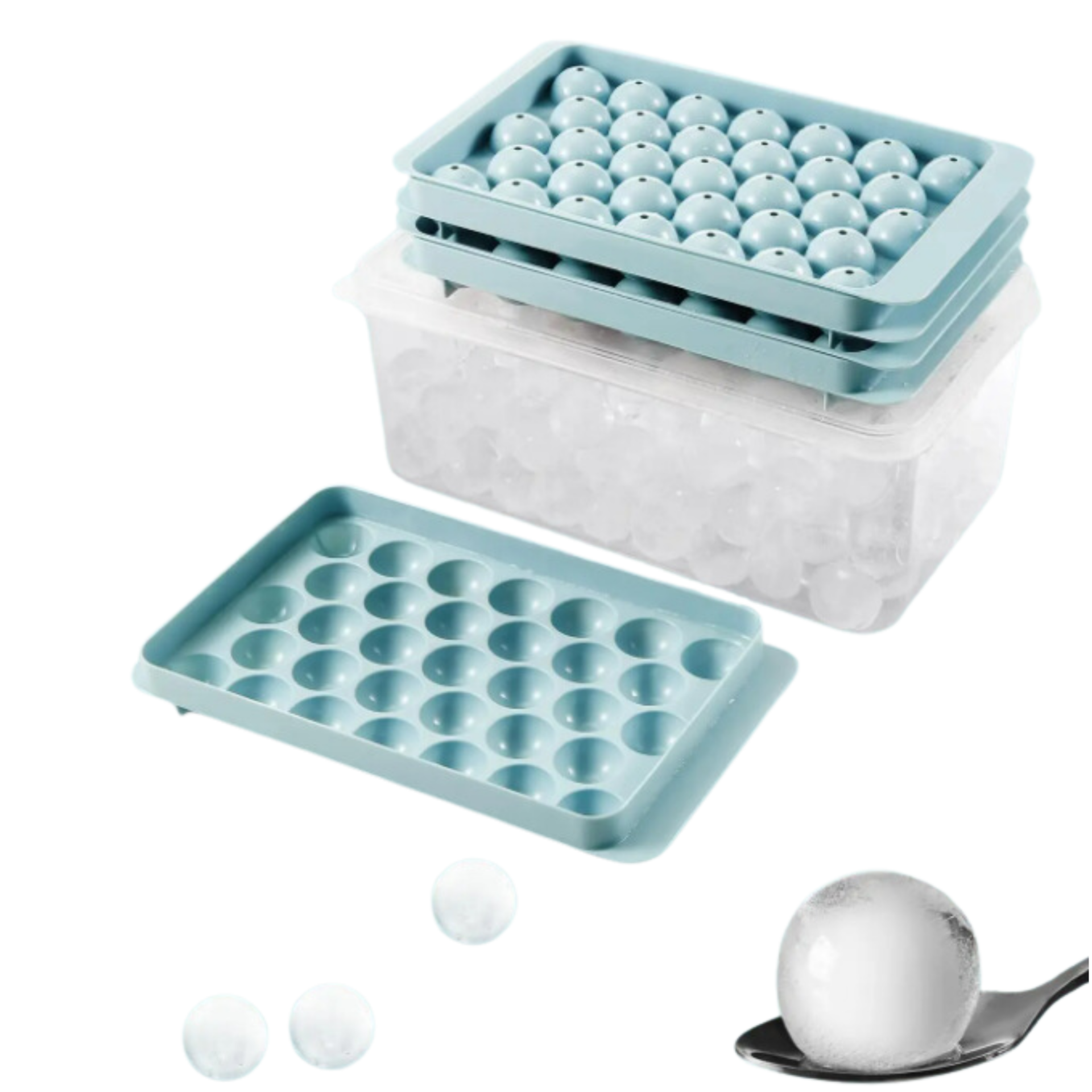 Maak op een eenvoudige manier 99 ronde ijsblokjes met de ijsblokjesvorm.