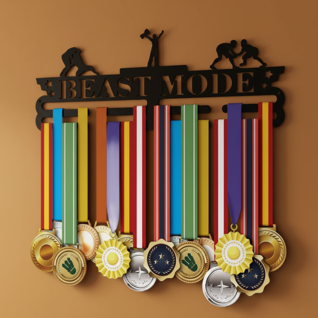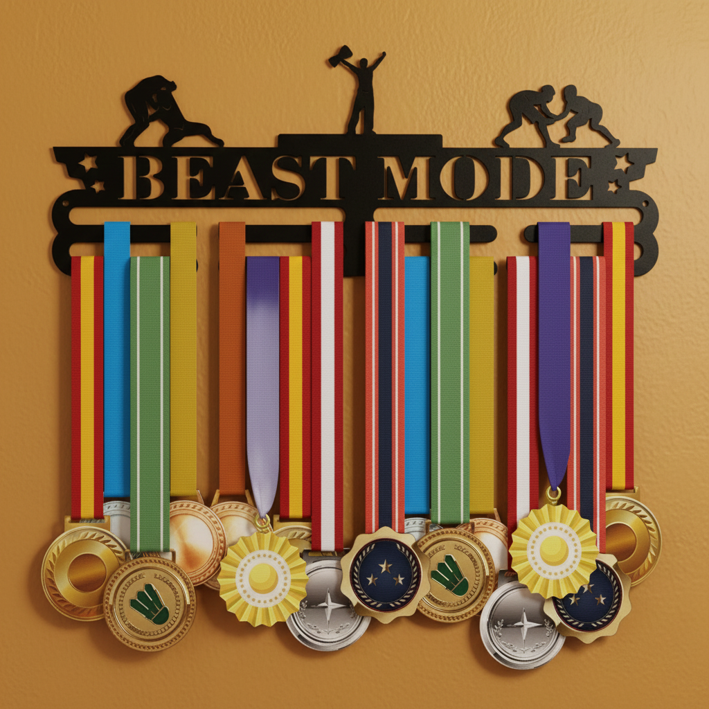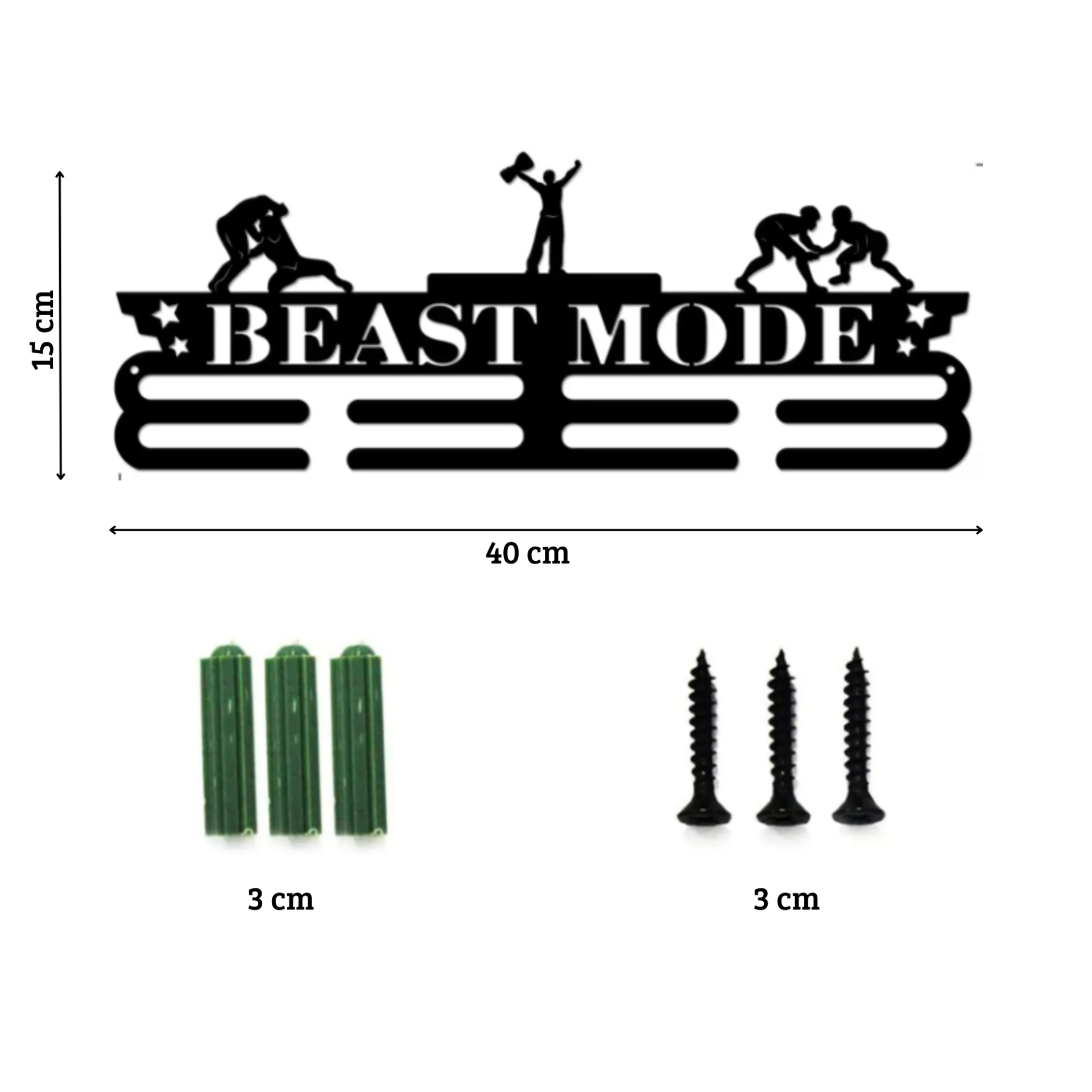 Ben jij als vechtsporter klaar om je glansprestaties te tonen? Laat je medailles schitteren met de unieke "Beastmode" Medaille Organizer van Janse! Deze zwarte, metalen organizer is een must-have voor elke vechtsportliefhebber. Met ruimte voor maar liefst 21 medailles en voorzien van gedetailleerde afbeeldingen van vechtsporters, straalt dit ontwerp kracht en vastberadenheid uit. Inclusief bevestigingsmateriaal, zodat je je pronkstukken eenvoudig kunt ophangen en organiseren. Laat je prestaties stralen en inspireer anderen met je doorzettingsvermogen!