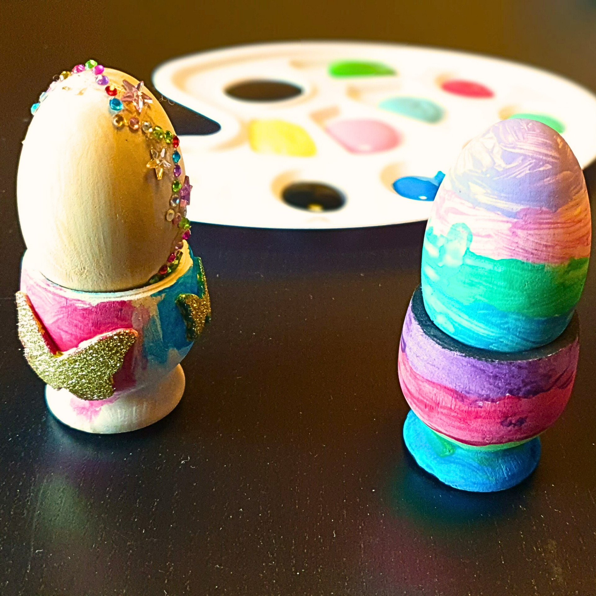 1. Zijn de houten eierdoppen en eieren al voorgeverfd?