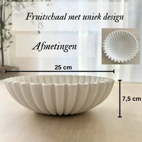 De ronde fruitschaal heeft een golvend patroon wat zorgt voor een uniek en stijlvol design. Een echte eyecatcher in jouw keuken of op de eettafel!